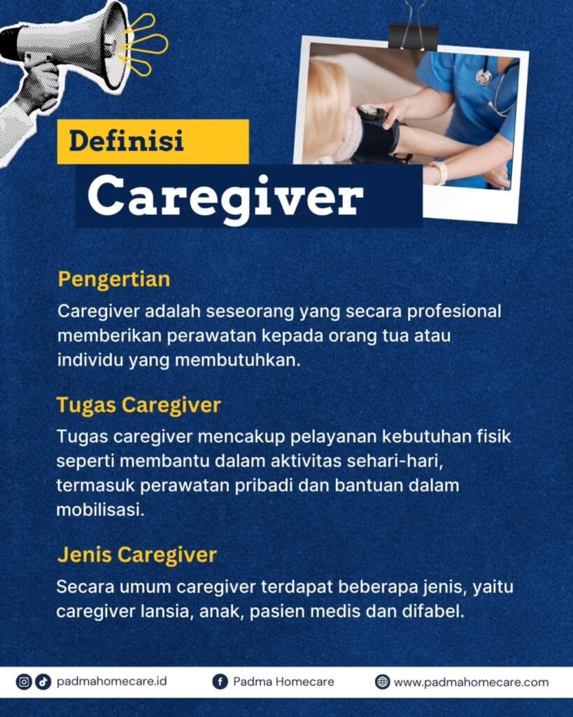 Caregiver (petugas terlatih non-medis atau pengasuh) untuk membantu pasien melakukan kegiatan sehari-hari dan memberikan dukungan fisik dan emosional. Tanggung jawab mereka lebih terkait dengan perawatan sehari-hari yang tidak melibatkan prosedur medis, seperti: